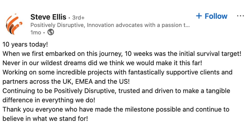 Showing that you’re hitting targets and moving in the right direction is always worth sharing on LinkedIn.