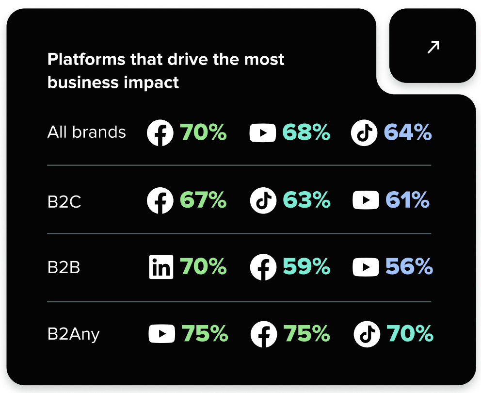YouTube is also attracting the attention of marketing leaders, 68% of whom say it drives the most business impact, according to The 2025 Impact of Social Media Report.