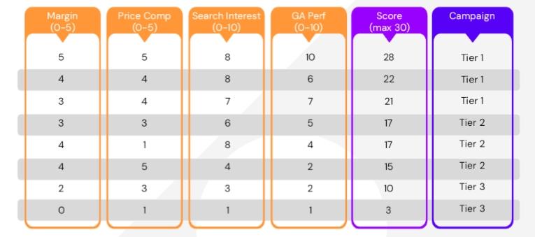 Structure your product analysis and tiering like a comprehensive grading system to prioritize each product according to marketing and business objectives.