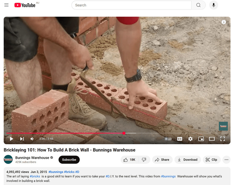 By far its most popular form of content is the how-to guide. In these tutorials, a Bunnings rep walks viewers through each home improvement process step-by-step, using simple language and offering actionable tips that everyday people can implement. Short, straightforward and led by real Aussies, Bunnings’ YouTube content is as down-to-earth as the brand itself.