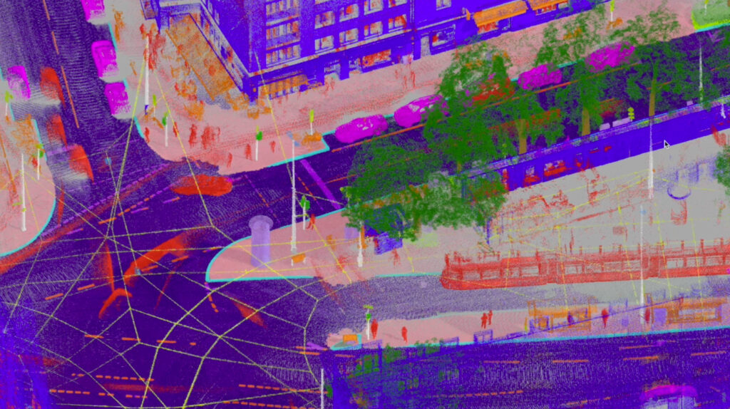 AI models provided by Hexagon to its customers help them solve complex challenges. These challenges are solved by specialized AI models that are often more effective than large, general-purpose ones. Before using scanned point clouds in geospatial applications, it’s essential to perform preprocessing and point cloud cleaning operations. Instead of relying on a single AI model to classify an entire dataset, targeted AI models have been developed that tackle distinct operations: one efficiently removes stray points from dust or sensor noise, another helps separate land types even in complex environments, and another detects and eliminates moving objects like cars and pedestrians while keeping fixed objects in the scene. This AI approach not only improves precision and efficiency, but also reduces processing demands and leads to faster creation of and more accurate 3D models.