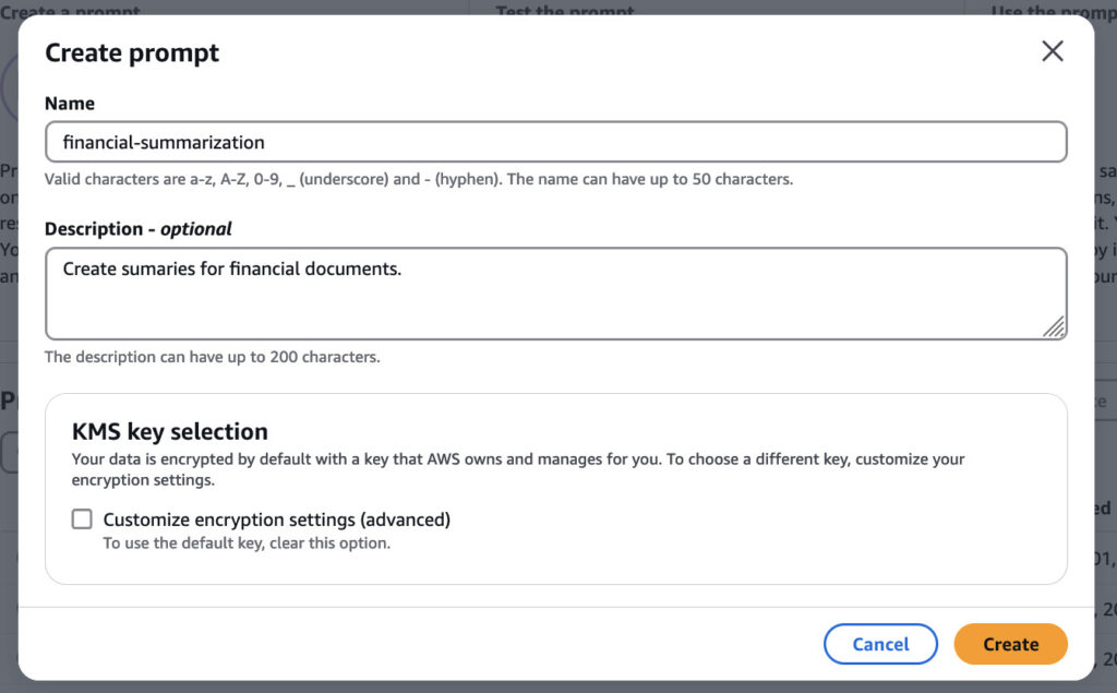 Choose Create prompt.