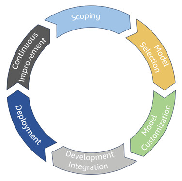 The Well-Architected Generative AI Lens focuses on the six pillars of the Well-Architected Framework across six phases of the generative AI lifecycle, as illustrated in the following figure.