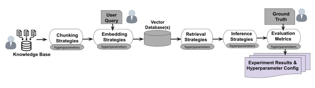 The RAG evaluation pipeline consists of the several key components, as illustrated in the following diagram.