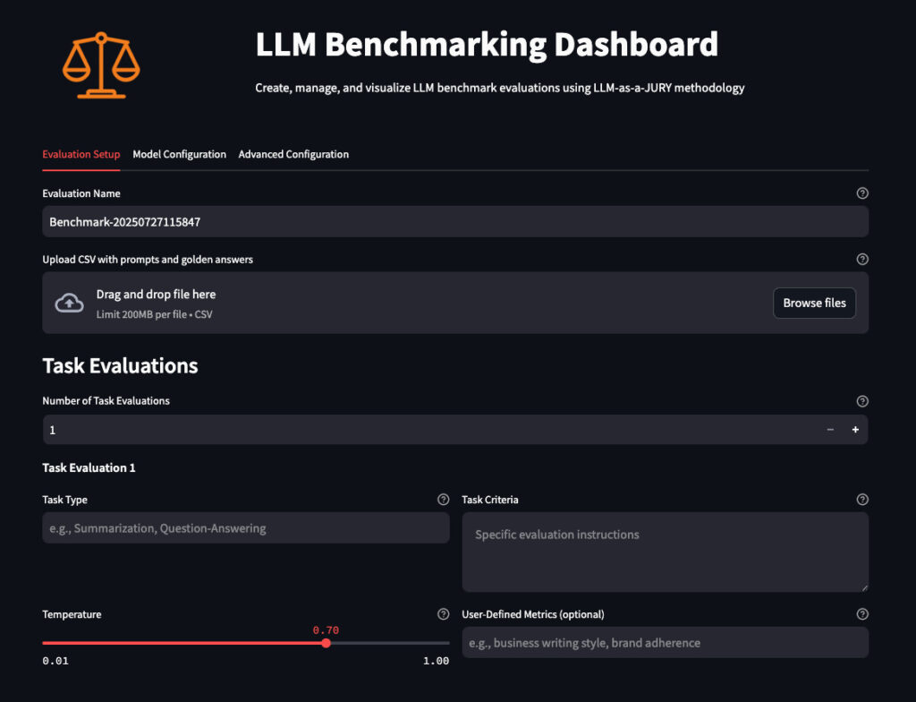 This is where you specify the CSV file with sample prompts, task type, and task criteria according to your needs.