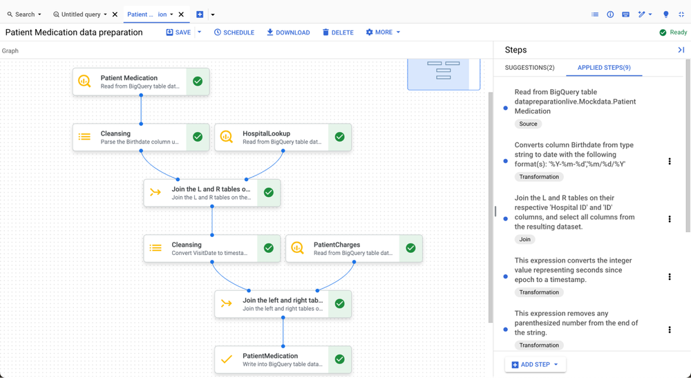 AI-powered suggestions: BigQuery data preparation uses Gemini in BigQuery to analyze your data and schema and provide intelligent suggestions for cleaning, transforming, and enriching the data. This significantly reduces the time and effort required for manual data preparation tasks.