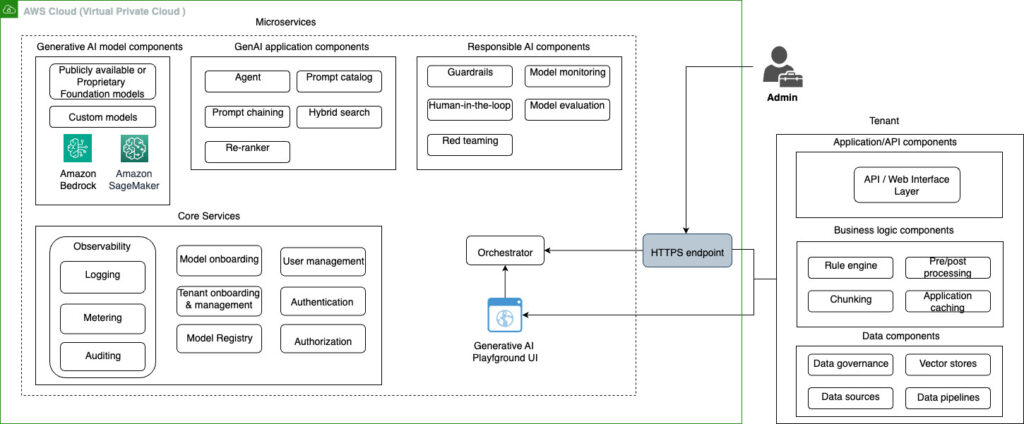 A multi-tenant, generative AI solution for your enterprise needs to address the unique requirements of generative AI workloads and responsible AI governance while maintaining adherence to corporate policies, tenant and data isolation, access management, and cost control. As a result, building such a solution is often a significant undertaking for IT teams.