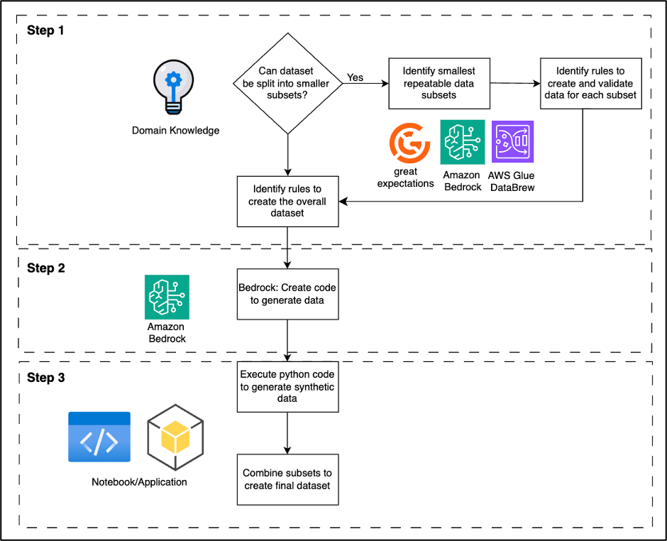 2. Use those rules to generate code using Amazon Bedrock that creates synthetic data subsets.