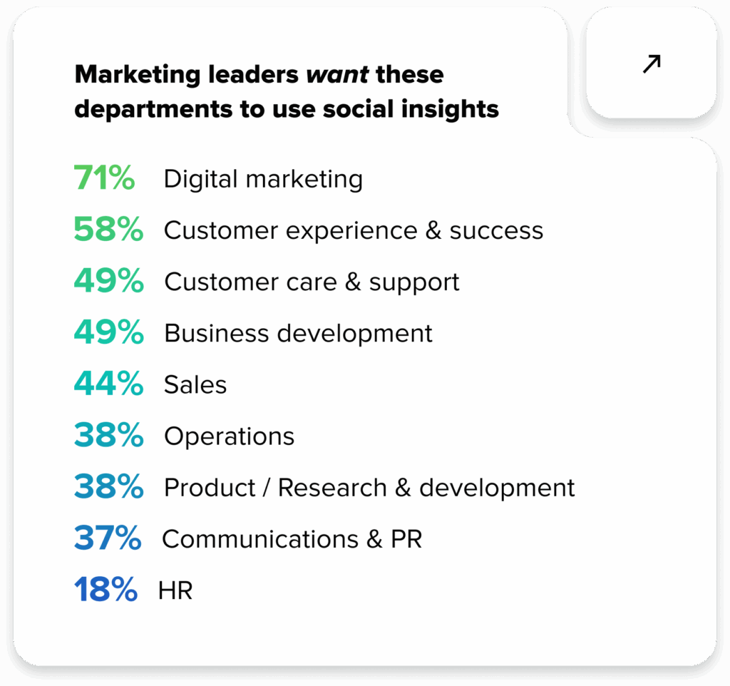 To drive growth, what teams need is social intelligence: the real-time, unstructured context of the market (i.e., what is happening right now). According to Sprout Social’s 2025 Impact of Social Media Report, half of leaders want teams across the business like customer experience and success, customer care and support, and business development to use social insights to inform their decisions. Social intelligence will help these teams move from analyzing the past to moving toward the future with strategic vision.