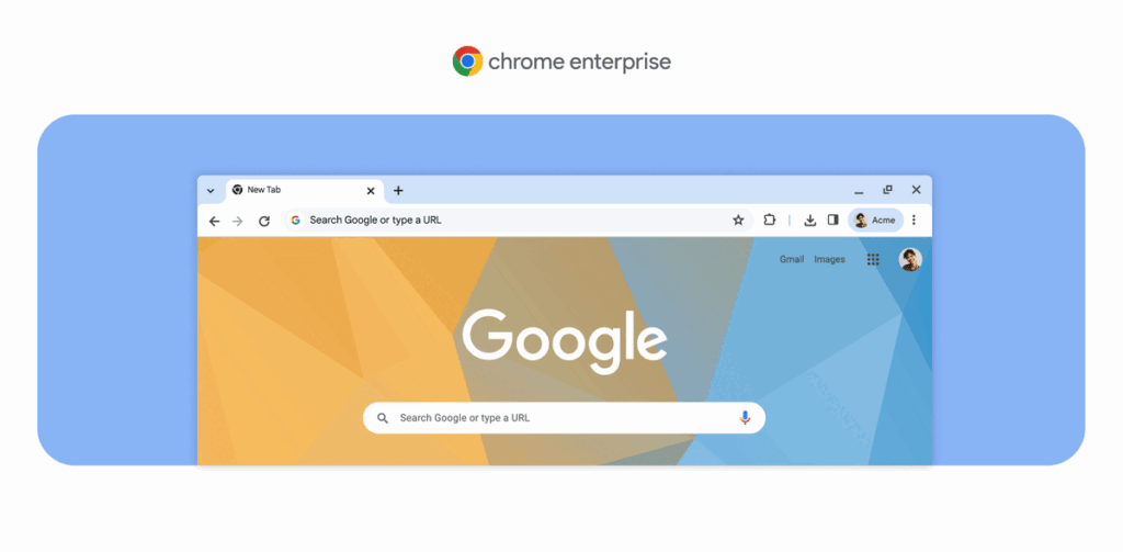 Many organizations are using the browser as a secure endpoint, enforcing secure access to critical apps and data for employees and contractors right at the browser layer. With the browser playing a more critical role in daily work, it’s more important than ever for IT teams to make it clear to employees that they are logged into a corporate browsing experience that is managed and monitored by their company. Chrome Enterprise makes this easier to signal than ever before by now allowing organizations to customize browser profiles with their company logo.