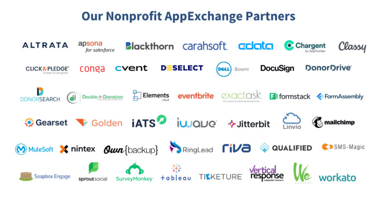 Through our experience completing more than 3,000 Salesforce implementations, Cloud for Good has developed close partnerships with AppExchange vendors, and we have extensive experience with all AppExchange solutions in the nonprofit sector. Our partnerships allow us to stay updated with the latest AppExchange enhancements, including their solutions’ compatibility with Nonprofit Cloud, and we’re happy to share that knowledge with our clients, help you navigate your options, and find the perfect solutions that will support your nonprofit now and in the future on Nonprofit Cloud.