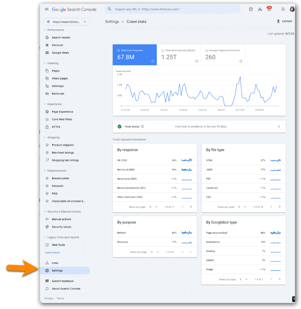 Go to the Crawl stats section.