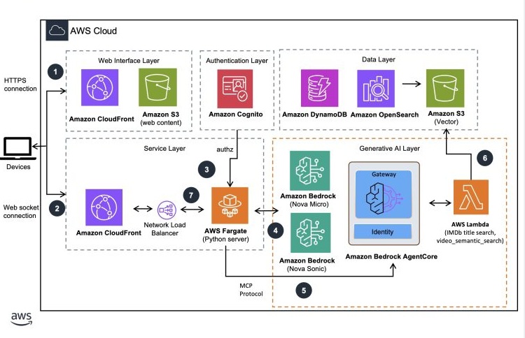 Deliver hyperpersonalized viewer experiences with an agentic AI movie assistant using Amazon Nova Sonic 2.0Recommendation systems are the backbone of modern media streaming services, shaping how users discover content. Traditional machine learning (ML) systems use collaborative or content-based filtering to predict content preferences. However, they often miss context-dependent needs, such as time of the day, mood, or social settings. For example, after watching ‘The Shawshank Redemption,’ a system might suggest more prison dramas, ignoring that the user might want something lighter to unwind. A hybrid approach addresses this gap by combining traditional machine learning pattern-recognition capabilities with generative AI’s contextual understanding and conversational abilities. Agentic AI takes this further by engaging users through dynamic dialogue and reasoning about viewing context. These recommendation agents synthesize information from multiple sources—plot summaries, reviews, viewing history—and incorporate real-time user feedback. Users can ask about specific scenes or themes, and the agent provides contextual explanations. This creates an experience like consulting a knowledgeable curator who understands both content and individual preferences.