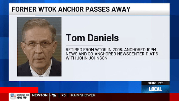 Daniels retired from the Meridian, Mississippi ABC affiliate in 2008.