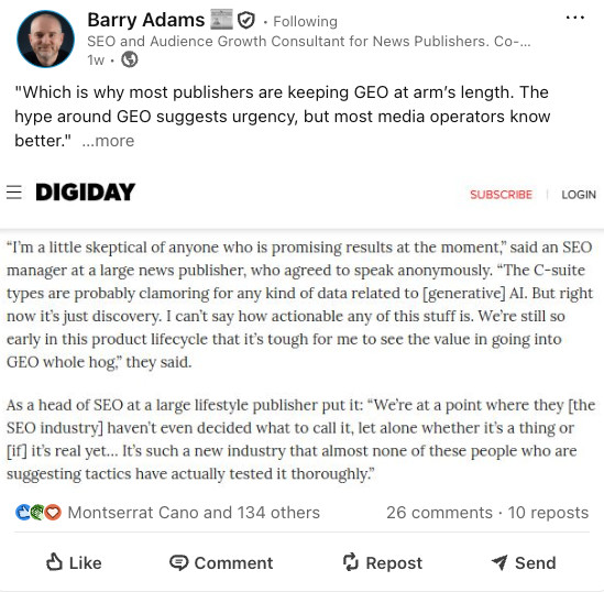 What does this mean for SEOs and digital marketers deciding how much to invest in GEO?