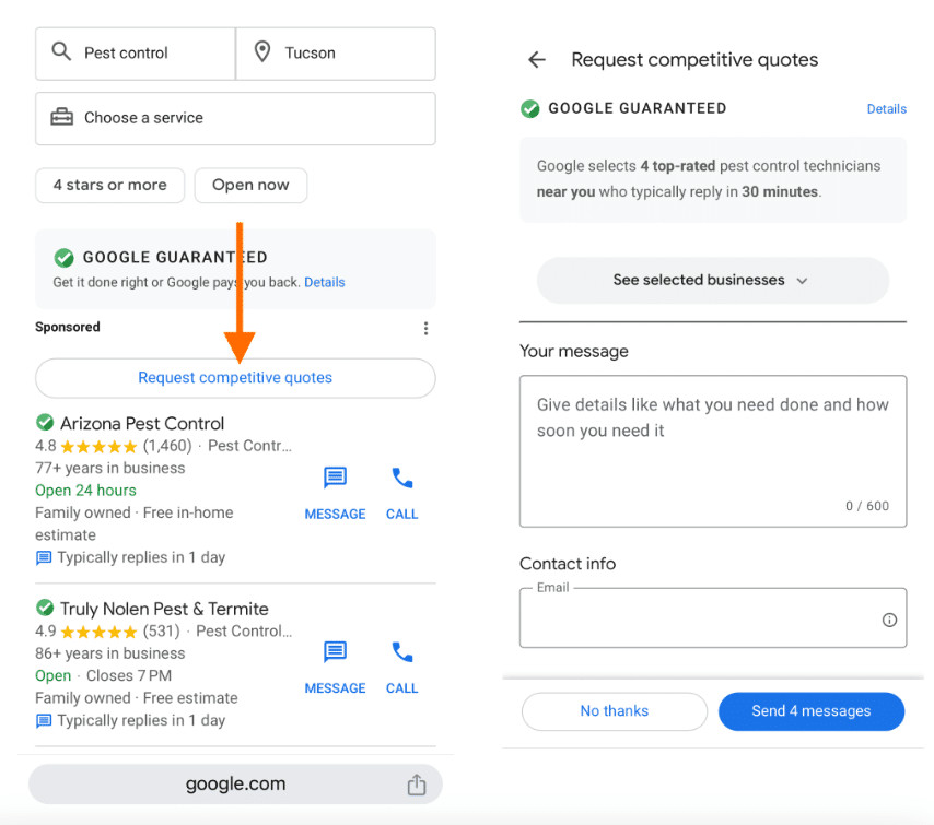 Google sends the request to all selected businesses simultaneously.