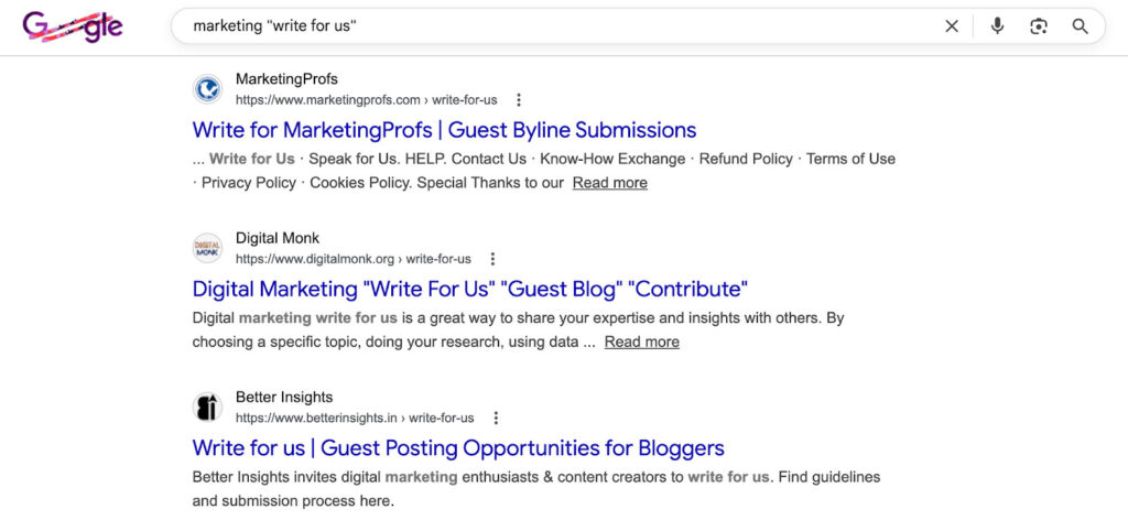 The easiest way to find potential websites is by googling your niche alongside “write for us.”