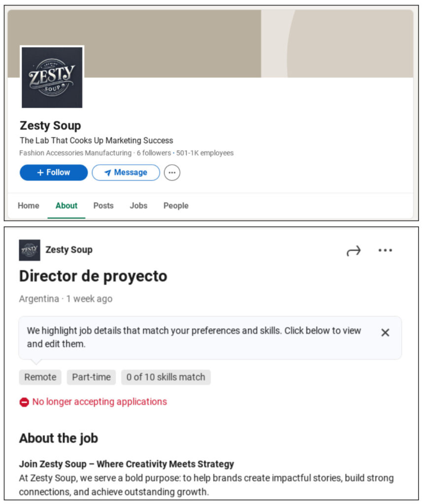 The effectiveness of this campaign hinges on a classic social engineering tactic where the victim initiates the first contact. UNC6229 creates fake company profiles, often masquerading as digital media agencies, on legitimate job platforms. They post attractive, often remote, job openings that appeal to their target demographic.
