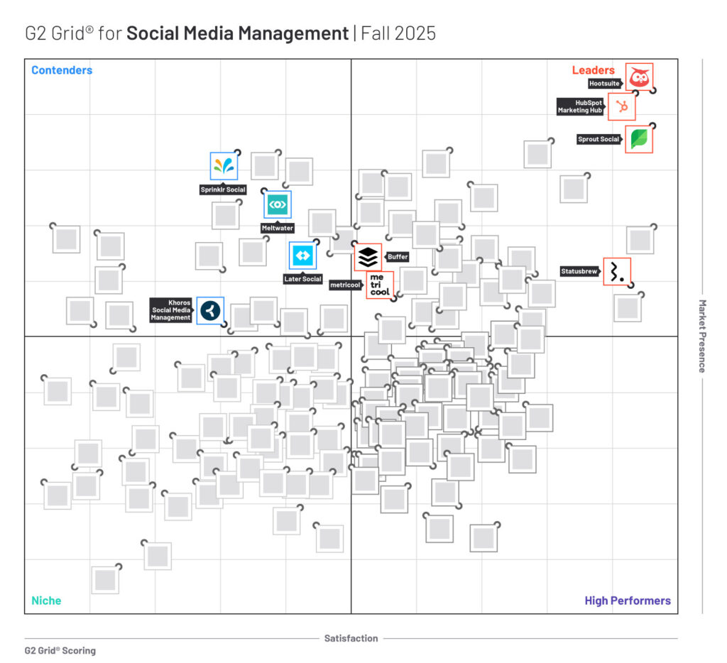 G2’s rankings are based on verified customer reviews and market presence, reflecting how large organizations run social every day.