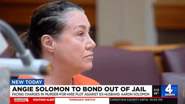 Solomon was arrested in April for the alleged plot to kill her ex-husband, Aaron, a former anchor at Nashville, Tennessee NBC affiliate WSMV.