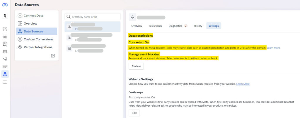 - Review custom and offline events. You can block specific events in Meta Events Manager if adjusting them takes too long.