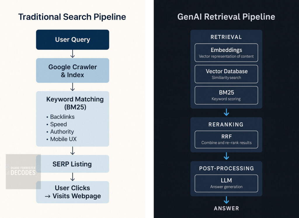This is the new search stack. Not built on links, pages, or rankings – but on vectors, embeddings, ranking fusion, and LLMs that reason instead of rank.