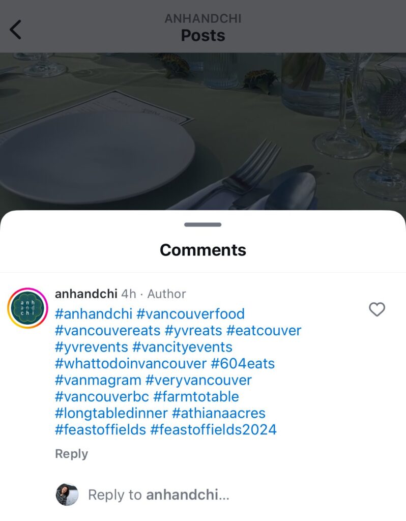 Anh and Chi use hashtags like #vancityeats and #vancouverfoodie to show Instagram users (and the algorithm) that the restaurant is in Vancouver. “Location-related hashtags help us reach our local audiences,” says McWhirter.