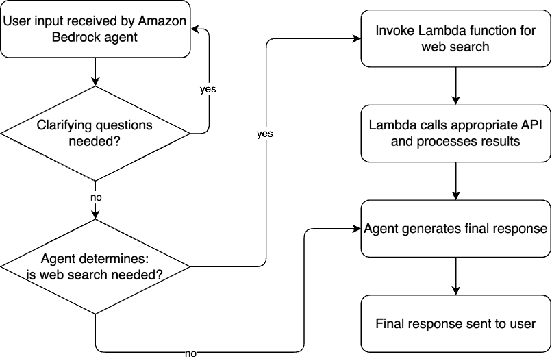 Enhanced problem solving – By integrating web search APIs, your Amazon Bedrock agent can tackle a broader range of user inquiries. Whether it’s troubleshooting a technical issue or providing industry insights, your chatbot becomes a more versatile and valuable resource for users.