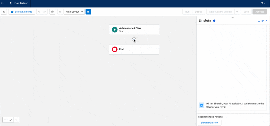We’ve upgraded the UI for the Einstein Panel in Flow Builder! This provides a larger, more user-friendly interface that you can drag anywhere on your screen, letting you work with Einstein’s Gen AI while you work with your Flow elements without constantly switching interfaces. Once you’ve enabled Einstein Generative AI in your org, open a flow and the Einstein panel will appear. Click the Einstein button to toggle it, use the dots to drag it where you need it, and easily pin or clear the history as you go. This flexible, simultaneous access to Einstein’s power directly within Flow Builder is all about making your flow-building process smoother and more productive! Note: This feature is available in Enterprise, Performance, and Unlimited Editions with the Einstein for Sales, Einstein for Service, or Einstein for Platform add-on.