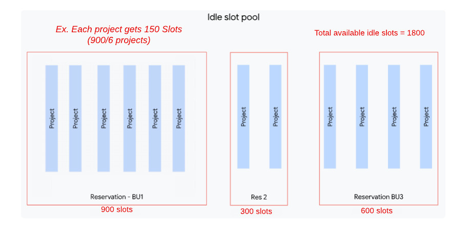Previously, using the fair-sharing method, BigQuery distributed capacity equally across projects. With reservation fairness, BigQuery prioritizes and allocates idle slots equally across all reservations within the same admin project, regardless of the number of projects running jobs in each reservation. Each reservation receives a similar share of available capacity in the idle slot pool, and then its slots are distributed fairly within its projects. Note: allocation assumes presence of demand. Idle slots are not allocated to reservations if no queries are running. This feature is only applicable to BigQuery Enterprise or Enterprise Plus editions, as Standard Edition does not support idle slots.