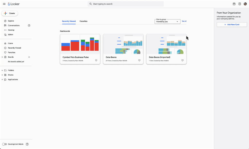 Data teams seem to be constantly balancing the need for governed, trusted metrics with business needs for agility and ad-hoc analysis. To help bridge the gap between managed reporting and rapid data exploration, we are introducing several new features in Looker, to expand users’ self-service capabilities. These updates allow individuals to analyze local data alongside governed models, organize complex dashboards more effectively, and align the look and feel of their analytics with corporate branding, all within the Looker platform.