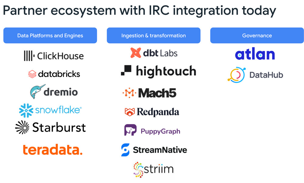 Google Cloud also supports a robust ecosystem of partners integrated with the Iceberg REST Catalog across data platforms and engines, transformation and ingestion services, and governance platforms. We work closely with the Iceberg ecosystem to strengthen these partnerships with many more to come.