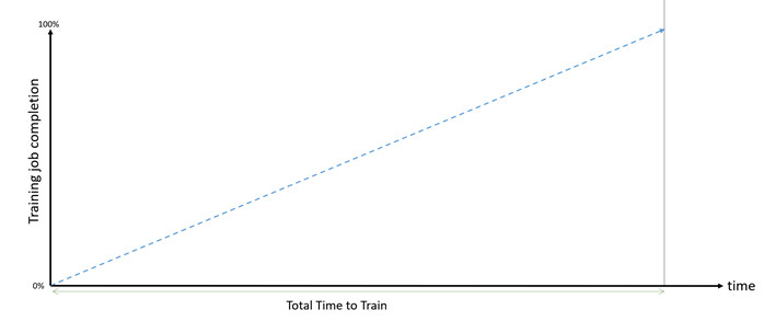 In a perfect world, without failures, the training job proceeds as shown in the following graph, which illustrates the total training time without failures, demonstrating a linear progression.
