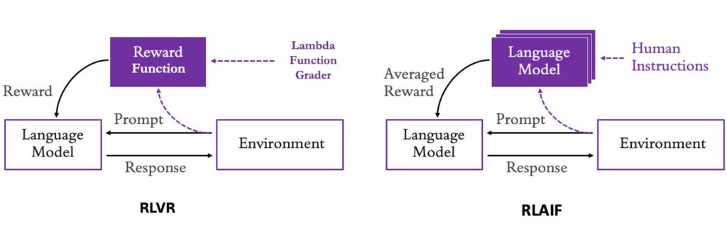 | Agentic workflows | Combination of RLVR and RLAIF; RLVR for tool calling correctness; RLAIF for final task completion, for example, measured as usefulness, correctness, or robustness |