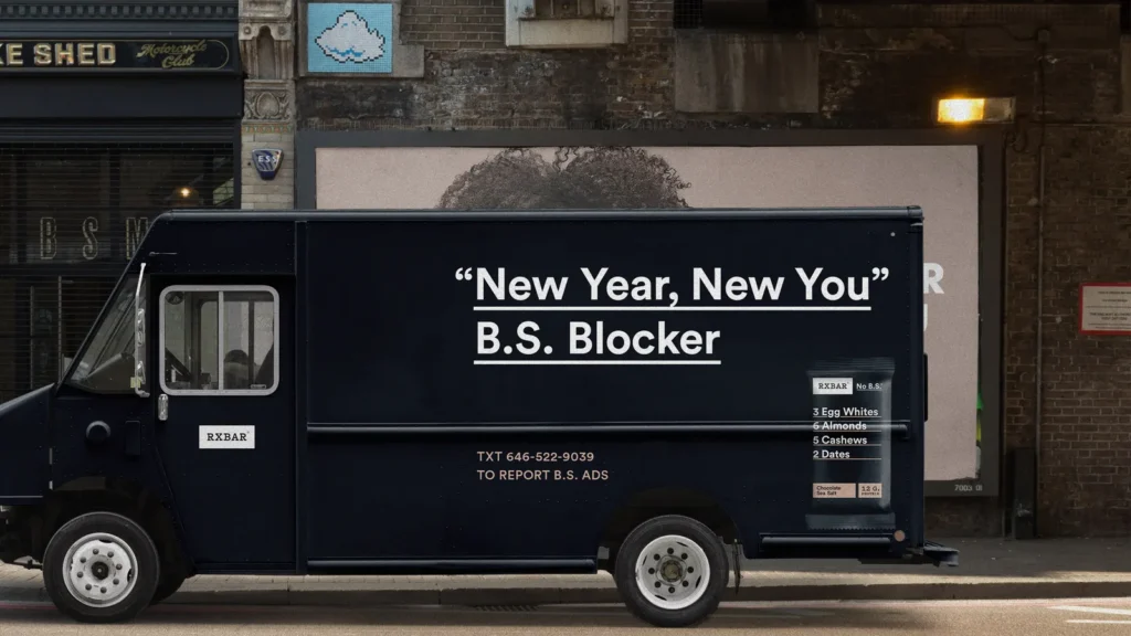RXBar combats ‘New Year, New You’ ads with B.S. Blocker Truck