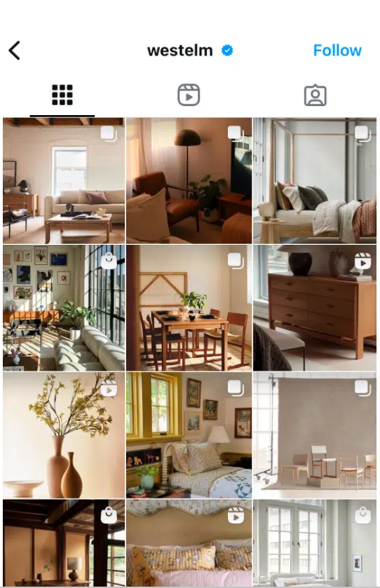 Take West Elm, for example. Their Instagram feed is a masterclass in consistency, with warm tones, clean lines, and modern interiors.
