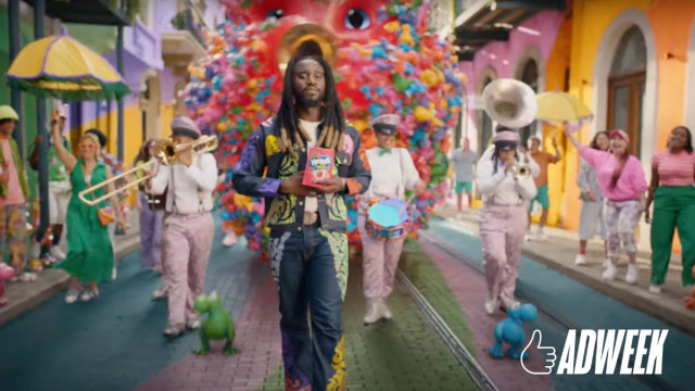 THE AD: Nerds’ Super Bowl ad opens with country singer Shaboozey leading a brass band of Nerds Gummy Clusters through the French Quarter in New Orleans as they play Louis Armstrong’s “Wonderful World.” As the brass band continues its march, Shaboozey’s demin outfit transforms into Mardi Gras colors of purple, yellow, and green, and the…