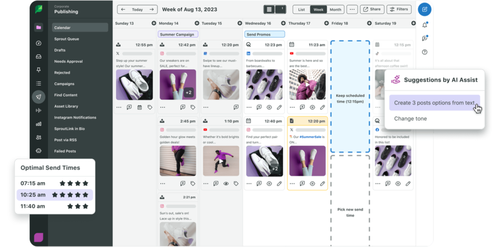 That’s where Sprout Social steps in. It solves this workflow friction by streamlining every step in a single, unified view. You get one calendar to plan across all your networks and automation tools that guarantee your content publishes on time. Plus, Sprout’s campaign management features help you organize and execute complex, extended campaigns—from product launches to seasonal promotions.