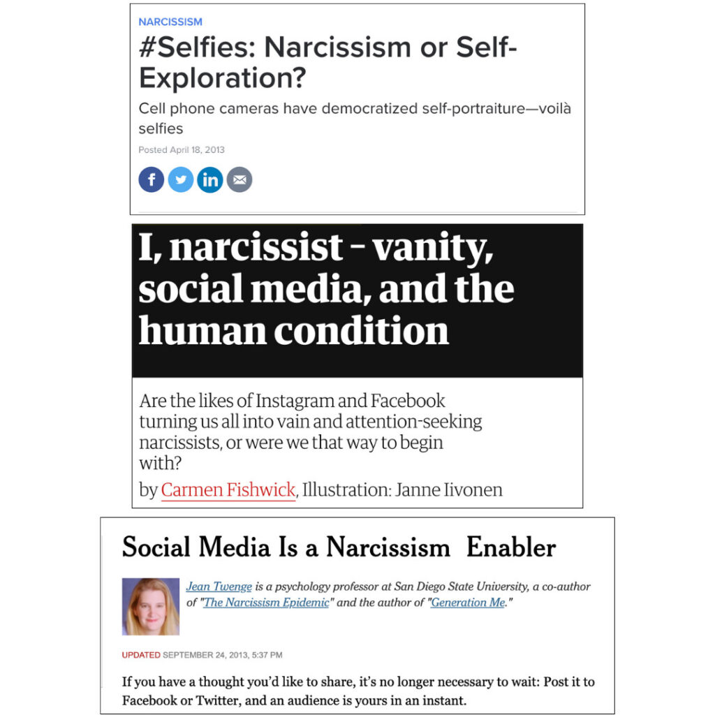 A roundup of headlines from 2013 about influencers, social media and narcissism