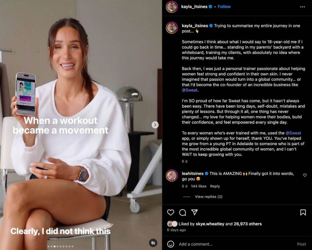 Kayla Itsines reflects on her social media journey with her Instagram followers