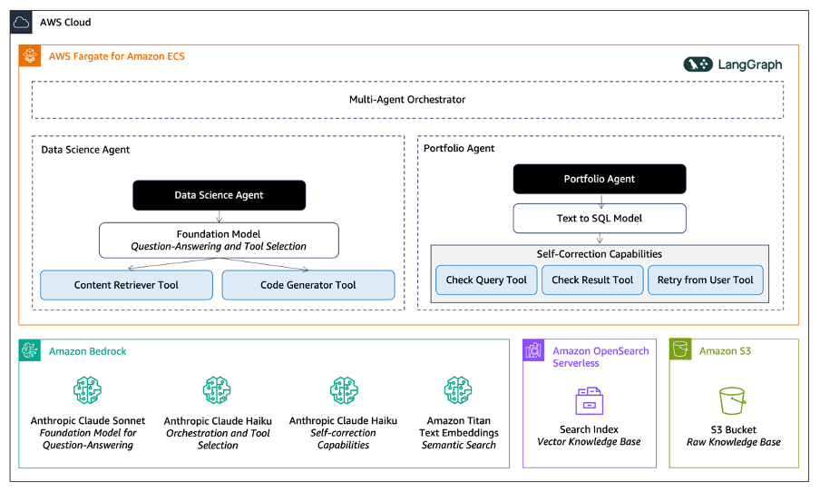 To overcome the challenge, we adopted an agentic approach, breaking down the problem into specialized use cases. This strategy equipped us to align each task with the most suitable foundation model (FM) and tools. Our multi-agent framework is orchestrated using LangGraph, and it consisted of: