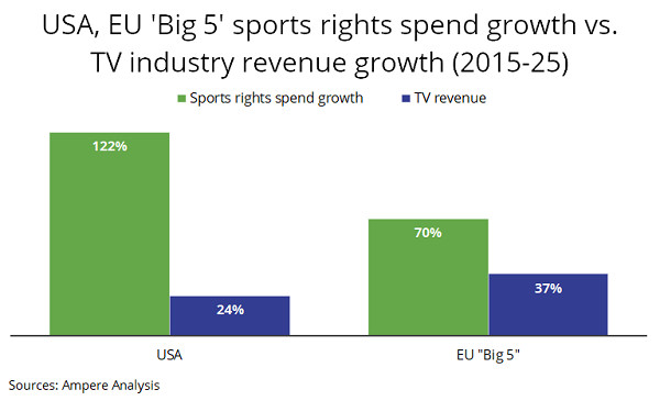 The Ampere data highlights the growing pressure on U.S. media companies to balance escalating sports costs with profitability