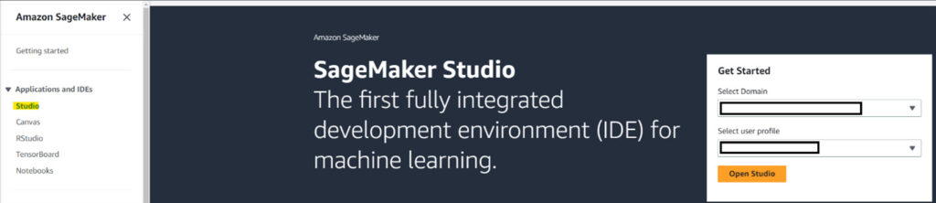 1. Open the AWS Management Console and go to SageMaker Studio.