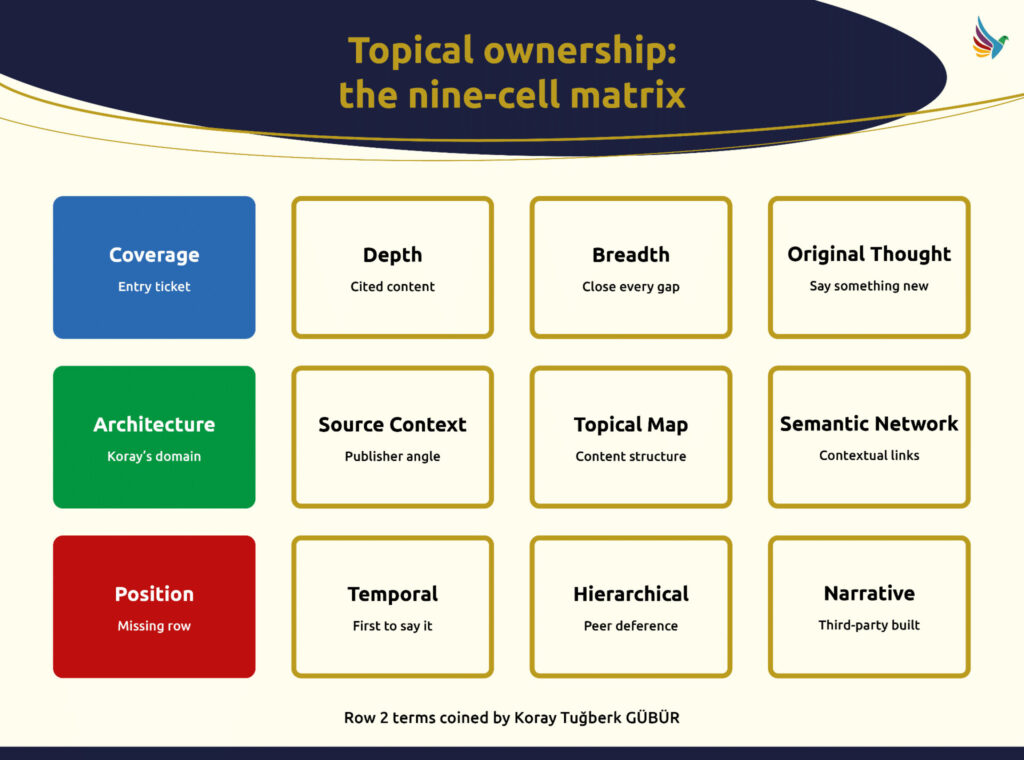 Topical authority is foundational for SEO and now AEO and AAO. But the framework the industry calls topical authority is incomplete. It covers semantics, content, and structure, but that’s just one part of a three-row, nine-cell model that defines topical ownership.